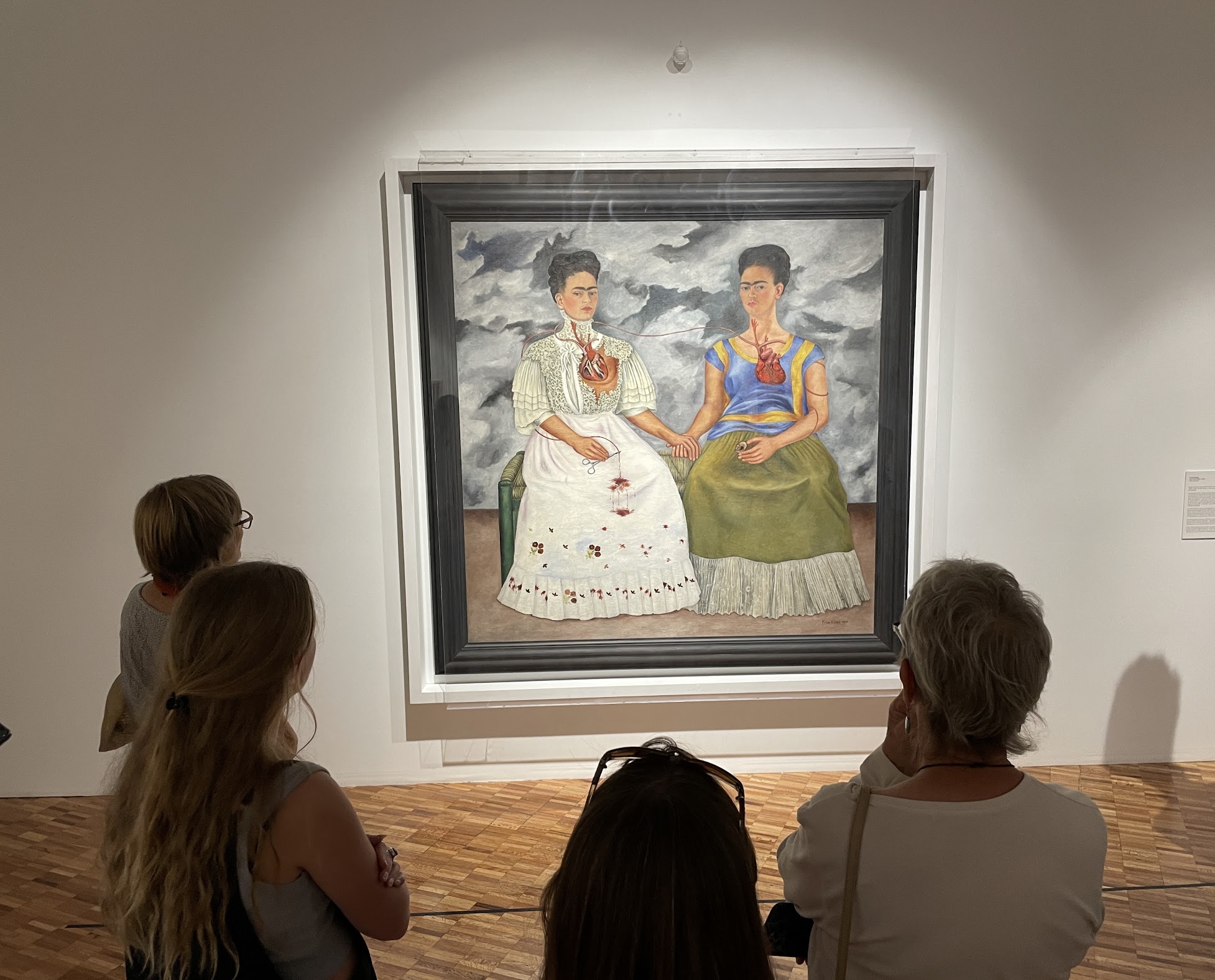 Con un guía apasionado, recorremos el Museo Nacional de Antropología que alberga una de las colecciones más impresionantes de arte y cultura indígena del continente. Después de la visita guiada, hacemos una actividad de observación en el museo en la que cada estudiante elige una pieza y la describe en español. Por la tarde, compartimos una comida mexicana en el restaurante del museo mientras intercambiamos impresiones sobre lo aprendido. En la tarde, caminamos por el bosque de Chapultepec al museo de Arte Moderno, donde hay una colección permanente con obras de los grandes pintores mexicanos y donde se puede apreciar la obra más grande de Frida Kahlo: Las Dos Fridas.
